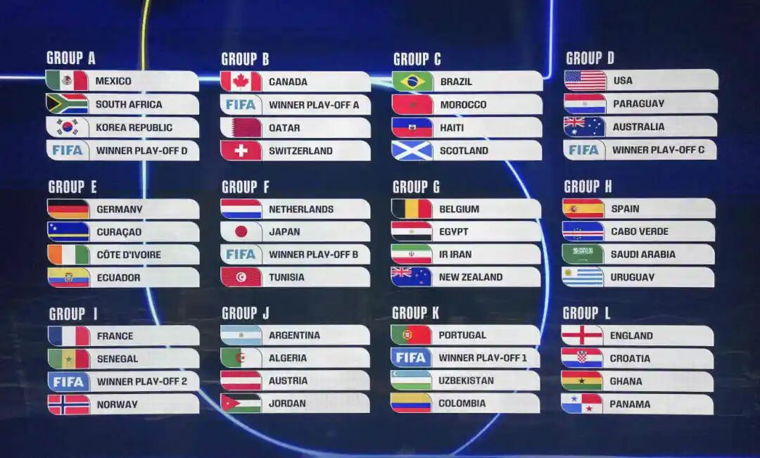 5.2026年美加墨足球世界杯小組抽簽揭曉